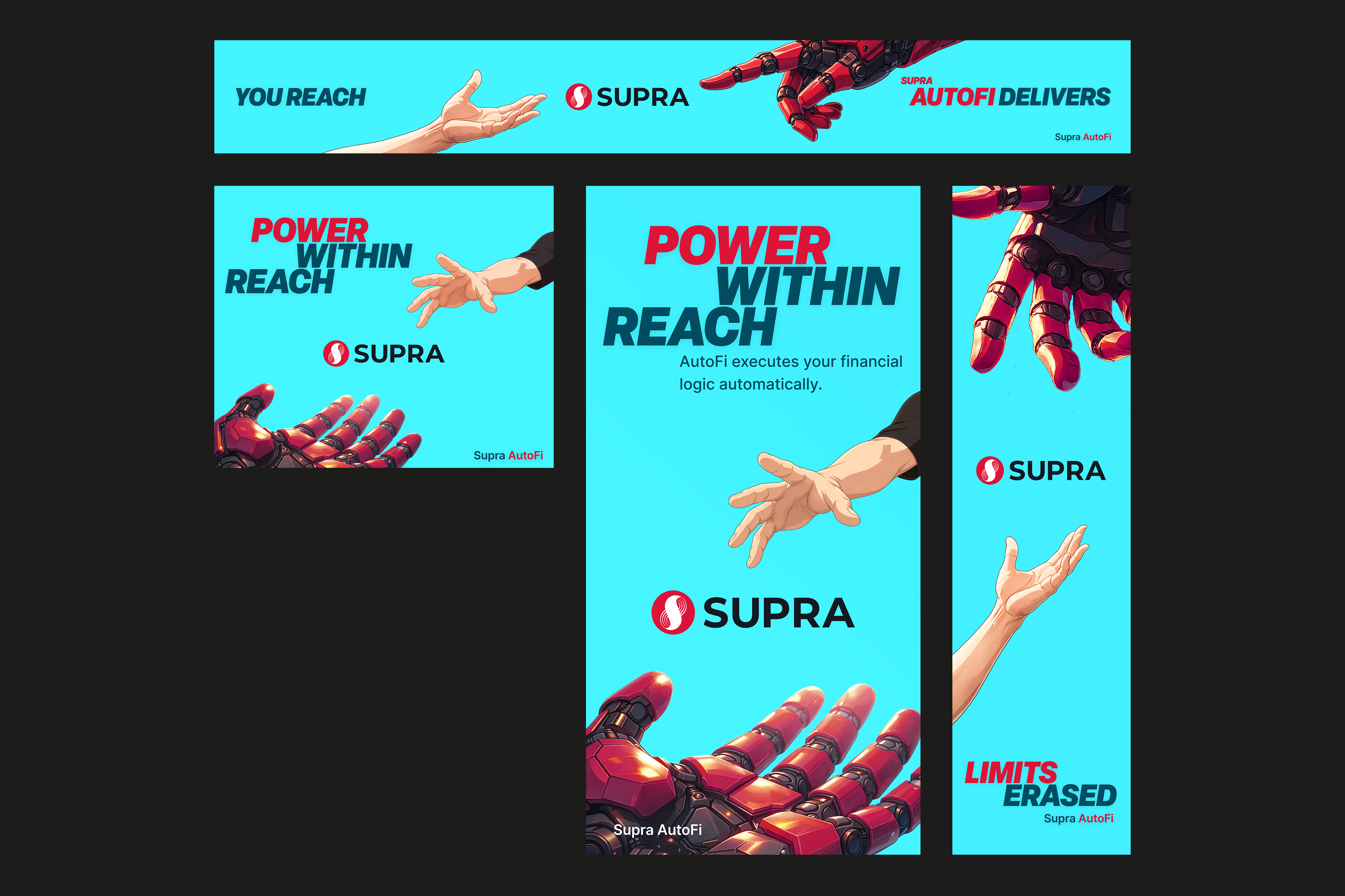 I designed a scalable visual system built around a central concept: human intent supported by automated execution. This idea was embodied through the relationship between a human and a robot character, visualizing the collaboration between personal decision-making and automated systems. Custom HUD-style interface graphics further reinforced this dynamic by visualizing execution flows in a technical yet accessible way.